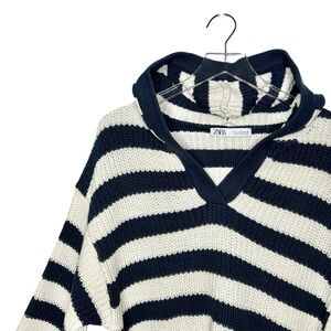Zara Oversized Women’s Chunky Striped Hooded Cotton Sweater Sz S