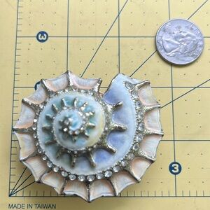 Nautilus shell enamel and rhinestone trinket box 2 x. 2.5 inches beachy colors