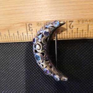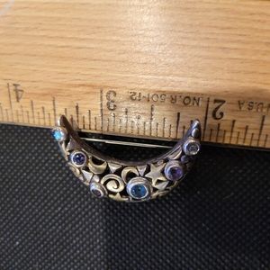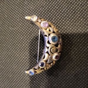 Crescent Moon & Stars Birthstone Sterling Silver Brooch