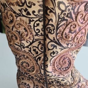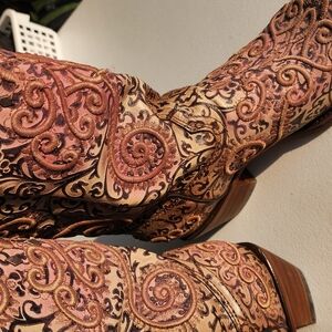Beautifully detailed cowboy boots with intricate embroidery. Perfect for adding a unique touch to any outfit. Changes colors in the sun!! Changes from cream to purple/pink.