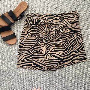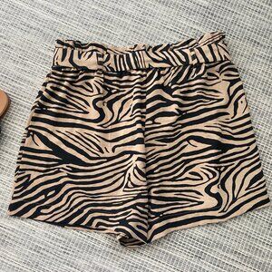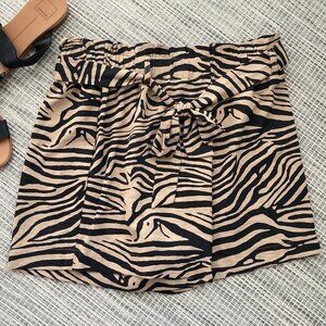 Rachel Zoe Tan Black Zebra Print Paper Bag Shorts with Tie Front Large