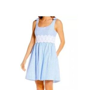 Chico’s Dress Hawaiian Floral Size 3 16/18 Linen Snap Up Pocket Drawstring Slits