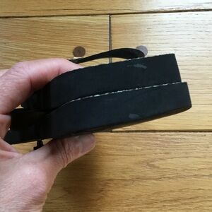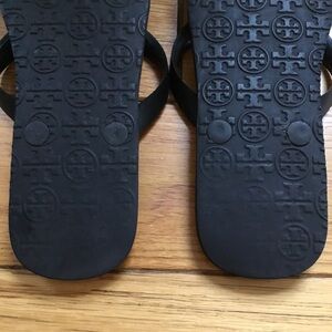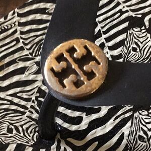 Good, pre loved condition. Tory Burch Zebra Thong Flip Flop. Gold tone logos have wear as noted. Some wear noted on bottoms as pictured. No size marked. I typically wear US 7.5 and these fit me nicely. Insole measures approx 9.25” tip toe to very back of heel.