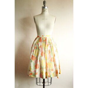 Charming vintage skirt from the 1960s in a pastel floral. Multi colored silk. Beautifully pleated all the way round the waist. Its not a full circle, but its very full. This is one of classic Summer/ Spring pieces you'll find yourself wearing again and again. No label. Probably in the medium range but do see measurements below.