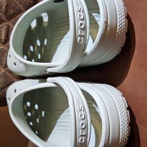 Here is a pair of Crocs Classic Slip On Clogs Shoes Men's Size 10 Women's Size 12 Light Green. They are in good condition with the exception of a little wear and a spot or two, but has lots of life left.