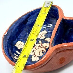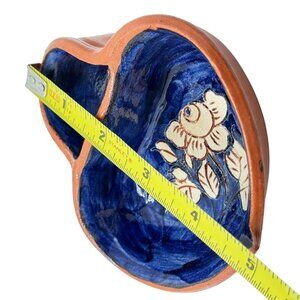 Portuguese Pottery Clay Terracotta Mini Blue Floral Olive Dish Hand-painted
