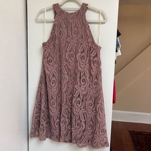 Chic lace dress in a soft mauve shade. Ideal for elegant events.