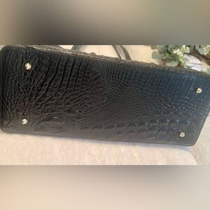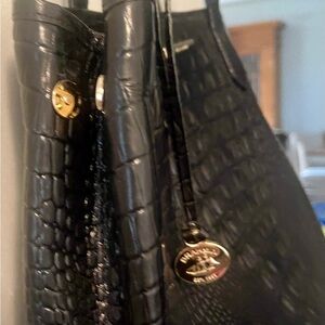 BRAHMIN Elegant Leather Black Crocodile-Embossed Tote Bag.