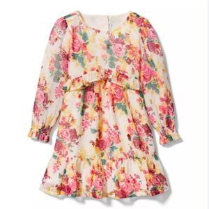 JANIE AND JACK Cream And Sugar Floral Floral Chiffon Dress, Magenta, Size 4