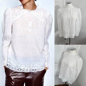 These Anthropologie wide leg pants feature a striking blue and white pattern, offering a relaxed and comfortable fit. The high-waisted design and flowing silhouette make them perfect for warm weather and casual occasions.