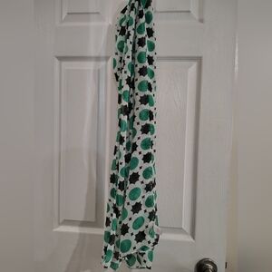 Fashion Scarf, long, green and black retro design with gold embroidery accents.