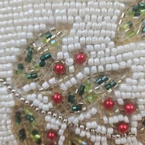 Glits + Glimmer Beaded Holiday pillow in excellent condition. Fully beaded on one side and solid white on the other. 12:"x 12".