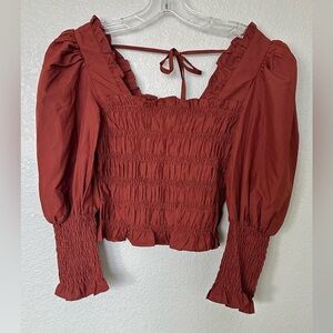 This elegant black blouse from Nine West features a smocked bodice and a flattering peplum hem. The long puff sleeves add a touch of sophistication, while the lightweight fabric ensures comfort and style. Perfect for both casual and formal occasions, this top is a versatile addition to any wardrobe.