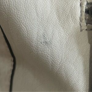 -this bag has been gently used, the straps are missing a little bit of the black coating on the outside (see picture) and 1 very slightly visible spot- see last picture