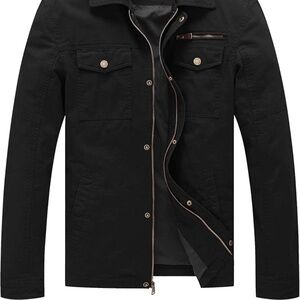 WenVen Men's Casual Canvas Cotton Military Lapel Jacket
