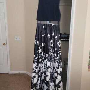 Betsy & Adam Blue and White Maxi Formal Size 10