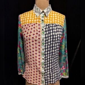 This stunning 100% silk jersey wrap dress by Diane Von Furstenberg features a chic black and white pattern, perfect for cocktail events or a night out. The long cuffed sleeves and plunge neckline add elegance, while the 3.5" wide collar and tie front create design interest. label dates this to the mid 1990s. It is a size 4. bust is 34"-35", waist is 28" , length is 37". Perfect condition and clean