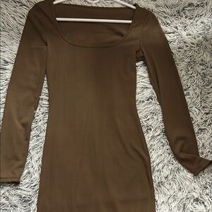 This elegant brown dress features a classic long sleeve design, perfect for any occasion. Its rich color adds a touch of sophistication to your wardrobe.