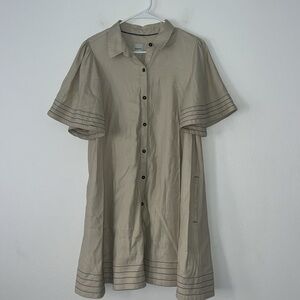 Maeve By Anthropologie Collared Button Down Mini Dress Size Medium Tan