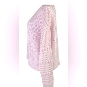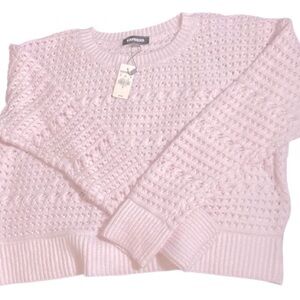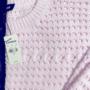 New with tag pastel pink sweater from Express. The textured knit pattern adds a crochet appeal, while the medium/light weight and soft cotton material makes it a year round wardrobe essential. Long sleeves. Great gift idea.