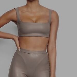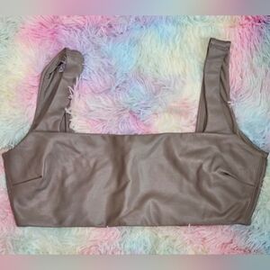 SKIMS Faux Leather Bralette Cement 2X NWOT. Pleather bra top with great support, thick enough to wear as a top too. Straight neckline and dips in back.