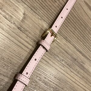 This Michael Kors Hamilton East West Ballet Pink Leather Satchel is a must-have for any stylish woman. With its beautiful pink exterior and gold hardware, this medium-sized satchel is perfect for any occasion. The bag features a snap closure, double handles, and a shoulder strap for versatile carrying options.