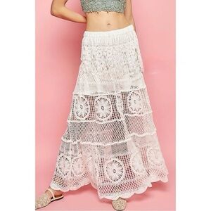Free People White Boho Floral Babydoll Slip Maxi Dress