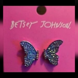 Betsey Johnson Paved Butterfly 3-D wing stud post earrings!