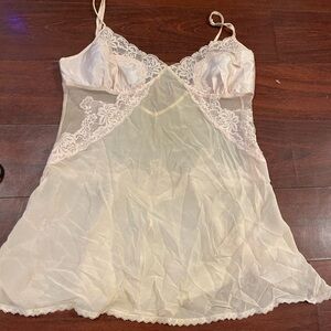 Beautiful floral chiffon dress with lace trim. Features a mix of pink, yellow, and green flowers on a blue background.