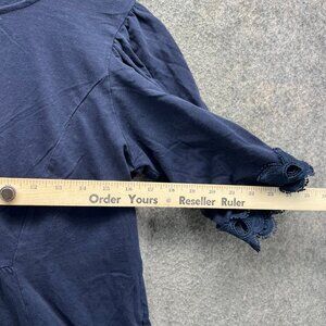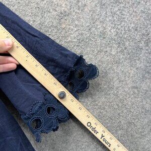 Boden Blouse Womens 6 Navy Blue Cotton Eyelet Lace Trim Boho Peasant Top