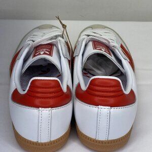 New without box. A timeless classic with a bold twist, the Adidas Samba OG sneakers in White and Red offer the iconic low-top silhouette with premium leather construction and suede overlays. Finished with a flat gum sole and round toe, these sneakers combine retro appeal with modern street style. Shoes include original tags and have no visible defects—see photos.