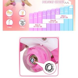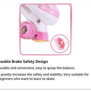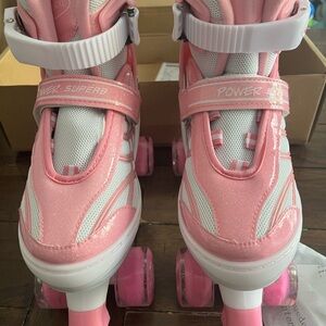 These stylish pink and white roller skates are perfect for kids who love to skate. Designed for comfort and fun, they feature a secure fit and durable wheels. Ideal for outdoor adventures.