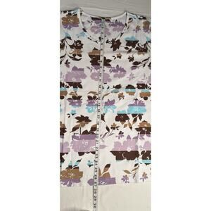 Denim Co XL White Purple Brown Floral Tee Short Sleeve Round Neck Stretch New