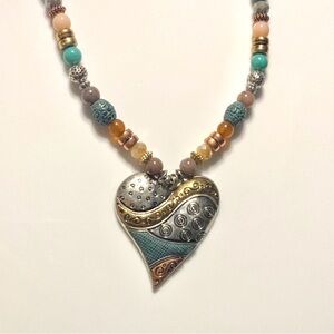 NWT Multi Bead with Heart Pendant Necklace & Earrings Set