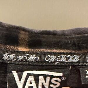 Vans plaid shirt with black and tan pattern. Features a classic design.