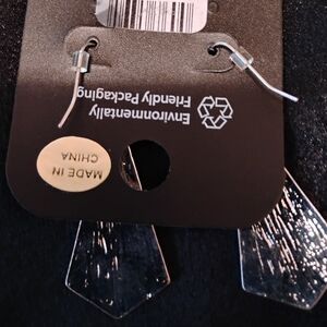 These Avenue earrings showcase a modern geometric design with a sparkling silver-toned top adorned with crystal embellishments and a sleek black enamel bottom.