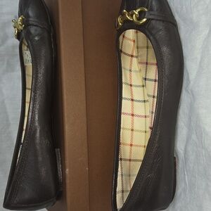 Coach Dark BROWN, Chestnut Flats with Gold Hardware and Plaid Lining 8 8B