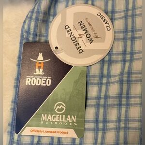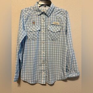 Houston Livestock Show & Rodeo Magellan Blue Plaid Pearl Snap Shirt Size Small