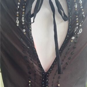 Vintage Coquette Flapper Inspired Y2K Sue Wong. Reminds me Great Gatsby. 100% silk. Pinned to dress form and tagged size 10, and is true to size. One run on the side and a few missing beads on the back.