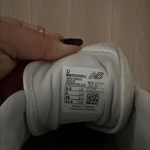 The New Balance 550 White Gum features an upper composed of a lightweight textile material that provides permeability and ventilation. The shoe's midsole features compression-molded EVA foam, which offers padding and impact attenuation. The outsole of the shoe is composed of rubber for grip and balance. The shoe features an "N" logo on the sides, "550" lettering on one side, and "NB" branding on the heel. The shoe's midsole features "NB new balance" on one side. The design is completed with a "new balance 550 NB" lettering on the tongue.