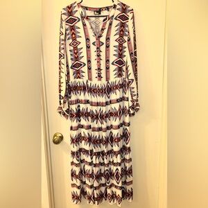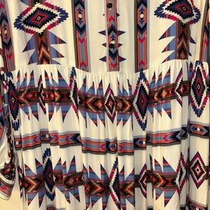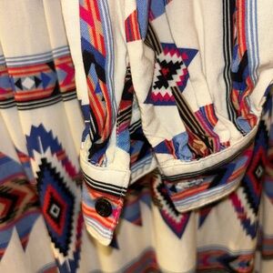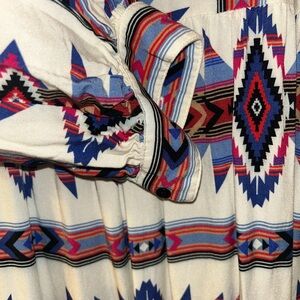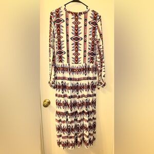 Embrace a resort-ready look with this vibrant sundress from The Kooples, featuring a captivating blue and red tie-dye pattern. The dress boasts a plunge neckline and bishop sleeves, offering a chic and flowing silhouette perfect for a relaxed yet stylish outing. Preloved. Great condition.