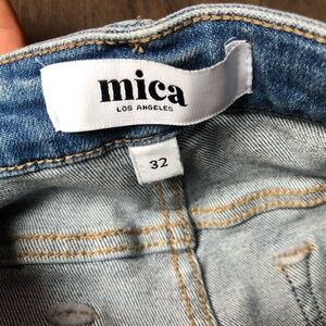 Mica Denim Jeans Women’s 32 Blue High Rise Crop Flare Distressed Hem