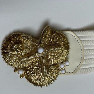 Never Worn Lilly Pulitzer white stretch belt with embellished gold starfish buckle and faux leather trim