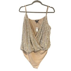 Express women’s silver sequin bodysuit size XL glam date night sexy …
