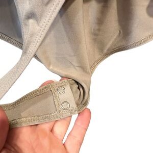 • Bottom Half: A solid, nude-toned bodysuit base with a sleek, fitted finish. The contrast between the sparkly top and the smooth bottom gives a layered effect. Snap crotch