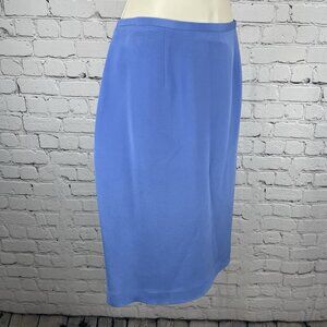 Maggy London Blue 100% Silk Lined Zipped Back Slit Knee Length Skirt Size 10