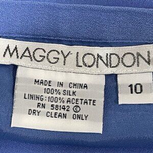 Maggy London presents a stunning blue skirt, perfect for any occasion. This knee-length, straight skirt is made of 100% silk and features a zip closure with a stylish slit detail. It is fully lined and lightweight, making it comfortable to wear for any event, be it a wedding, party, cocktail, casual or business meeting. The skirt is designed for regular size 10 and is to be kept dry-clean only.