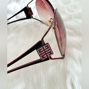 GIVENCHY LUXURY DESIGNER BURGUNDY BRONZE METAL CRYSTAL LOGO SUNGLASSES WITH SIGNATURE SOFT CASE