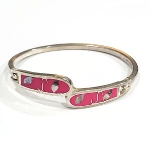 TAXCO MEXICO STERLING SILVER ABALONE SHELL INLAY BANGLE BRACELET