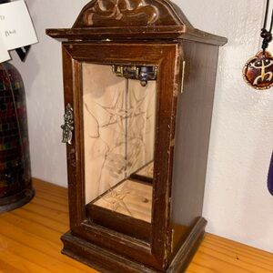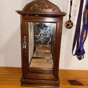Elegant wooden display cabinet with etched glass design. Perfect for showcasing small items.